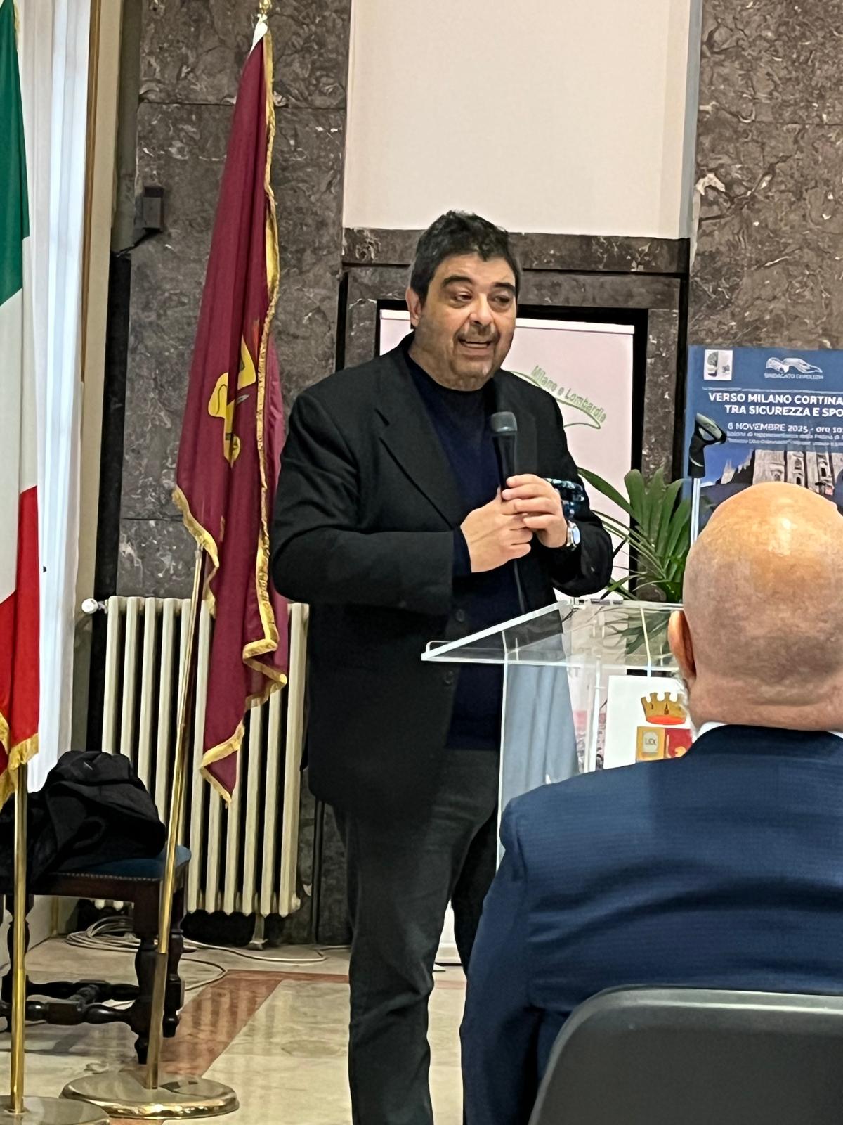 La splendida cornice del Salone di rappresentanza della Polizia di Stato ha visto alternarsi, davanti ad un pubblico folto ed attento, gli interventi del Prefetto di Milano, Claudio Sgaraglia, del Questore di Milano, Bruno Megale, di Auro Bulbarelli, Vicedirettore progetto editoriale RAI Sport – RAI per Milano Cortina e Maurizio Masciopinto, Presidente Nucleo di coordinamento MICO 2026.