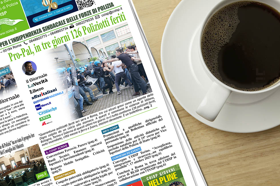 Home Coisp Flash COISP Flash 2025 COISP Flash n.41 del 13.10.2025 Coisp FlashCOISP Flash 2025 COISP Flash n.41 del 13.10.2025 By Redazione - 13 Ottobre 2025 292 Condividi FacebookWhatsAppTwitterTelegramEmailPrint Aggiungi ai tuoi preferiti SCARICA IL COISP FLASH IN PDF ARTICOLI COLLEGATIALTRO DI QUESTO AUTORE COISP Flash 2025 COISP Flash n.46 del 17.11.2025 COISP Flash 2025 COISP Flash n.45 del 10.11.2025 COISP Flash 2025 COISP Flash n.44 del 03.11.2025